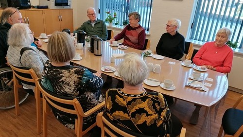 Ældrecafe starter med kaffe og brød. Der er altid et samtaleemne med det fokus, at alle kan tale ind i emnet og at vi får talt sammen om stort og småt. Nogle gange om året kommer der en ekstern oplægsholder.
